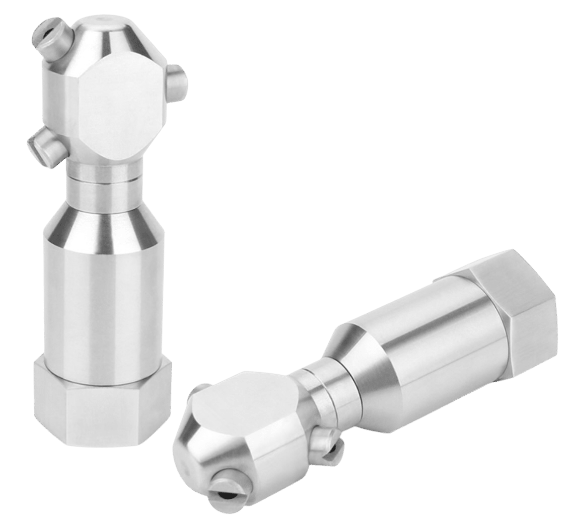 TANK WASHING NOZZLES APPLICATION AREAS: Used to clean silt inside sewage tanks, railcars, tankers, water supply tanks, pharmaceutical tanks, food processing tanks, storage tanks, and small and medium-sized tanks in the pharmaceutical, beverage, and chemical industries, or for equipment chamfering operations on barrels, reaction vessels, and tank containers.
